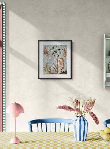 Acrylique, technique mixte, inclusion de matières végétales et minérales