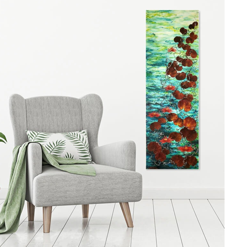 En suivant ce cordon, cette invitation à la détente au fil de l’eau est un appel à un moment de Plénitude et de détente. Imaginez-vous sur une barque, glissant sur cette onde calme, imprégniez-vous de la légèreté de ces nénuphars qui flottent à la surface.