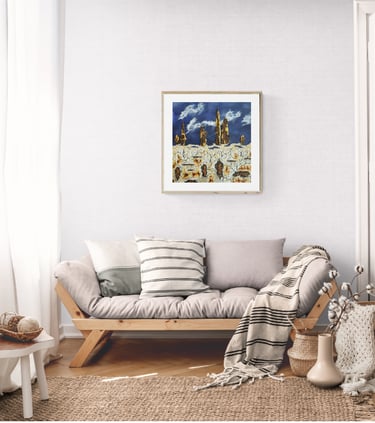 Toile coton sur châssis bois, finition vernis, prête à accrocher