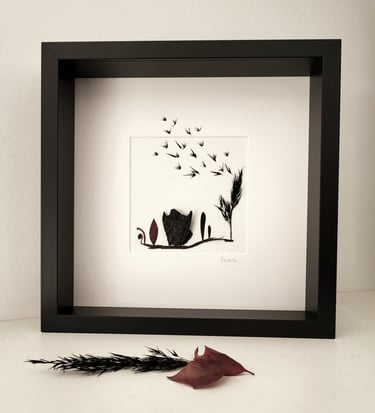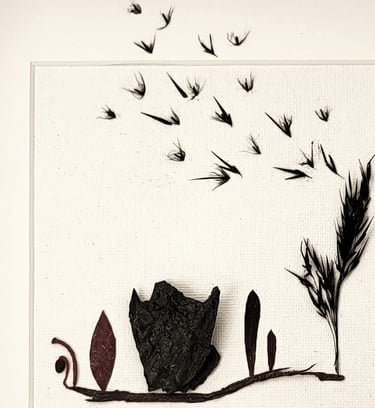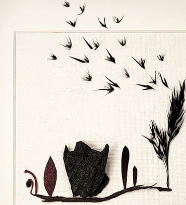 Ces fragments s'élèvent sous le souffle du vent. Le temps emporte nos pensées et nos instants de vie. Chaque départ est un prolongement des Racines