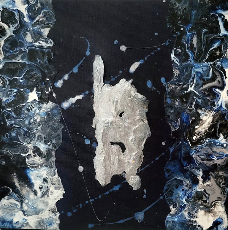 Acrylique, pouring et inclusion de matières végétales