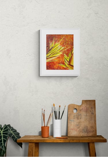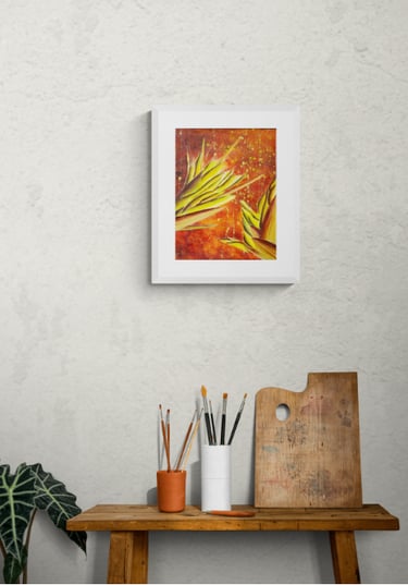 Toile lin sur châssis bois, finition vernis, prête à accrocher