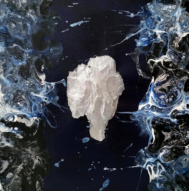 Acrylique, pouring et inclusion de matières végétales