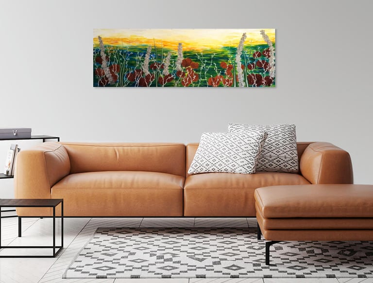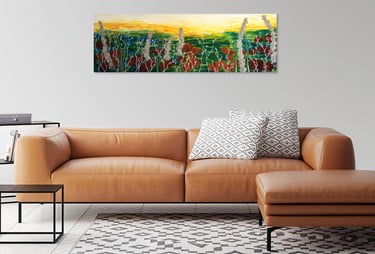 Toile coton sur châssis bois, finition vernis, prête à accrocher