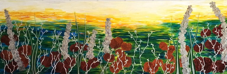 Acrylique, technique mixte et inclusion de matières végétales