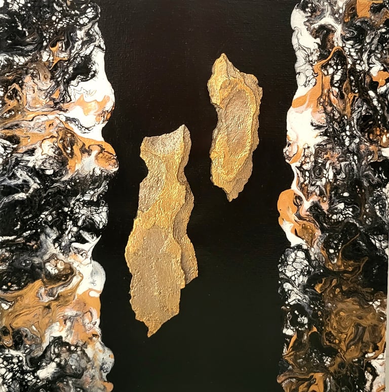 Acrylique, pouring et inclusion de matières végétales